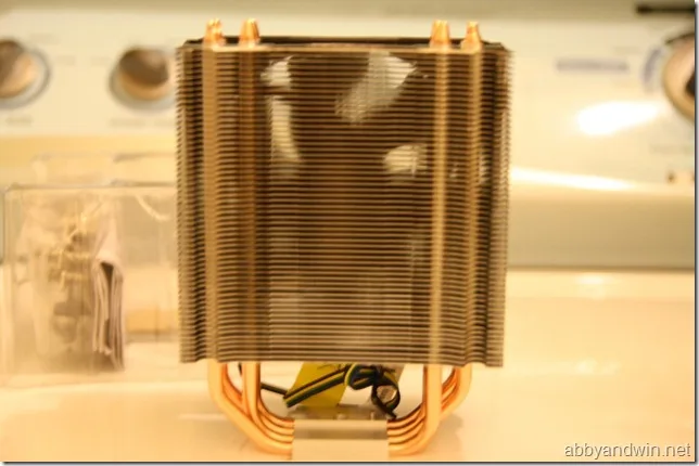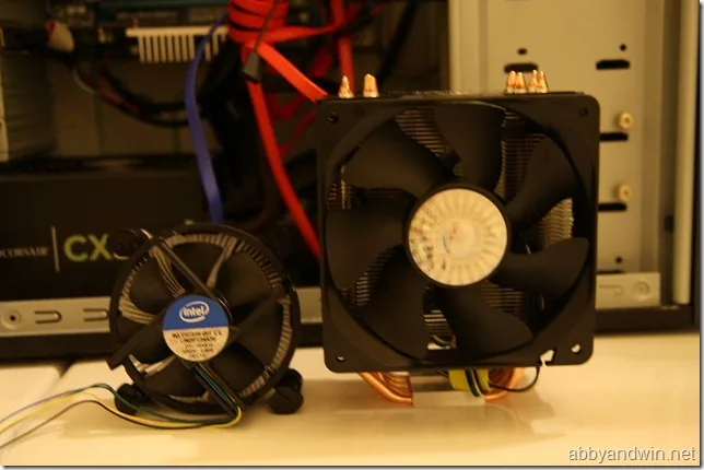 I have been building another computer for a few months now that will be my transcoding machine. Here’s the latest addition. Newegg had this fan on sale and it has many great reviews. I was curious and figured it wouldn’t hurt to try it. Besides, I’m only running the stock heatsink (i5-2500K) and it does its job. I’m sure it’ll be better than what I have now. The installation was straight forward. My tower has access to the motherboard from the bottom side (motherboard) so it made installing the bracket easy. It comes with a 120mm fan. The heatsink can use another but you have to buy it. So I bought another. Once the heatsink is in place, it does move a little. I’m not sure if I installed it right but it seems secure enough. Here are some pics of the heatsink and one fan.