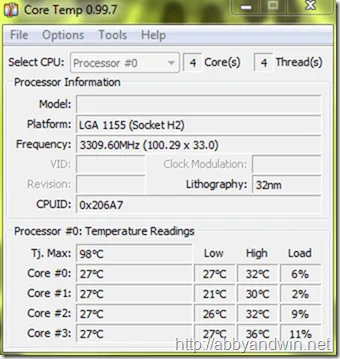 Temps with some load on the CPU. I get about 44* C on 96% CPU load with the Hyper 212 heatsink and two 120mm fans. The CPU is stock and not overclocked. Not too bad I think. It’s not as cooled as water coolers but I’m going simple for now and trying to get a better video card for this system that way I can use more CUDA cores than the 8400GS I’m using right now.
