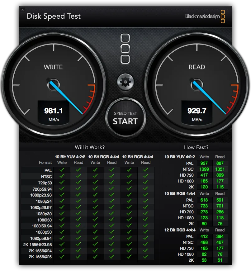 The SSD is very fast. Both read and write speeds are nearly identical.