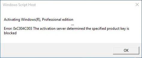 I ended up speaking with something and they told me that the blocked key error is a bit misleading. He said that the activation server cannot handle all the requests so it’s blocking people out. It’s not necessarily mean you have a bad copy of Windows and it won’t allow you to activate. They recommend to continue to wait and it will activate. I also found this thread to be a little helpful in terms of what others are experiencing - [http://answers.microsoft.com/en-us/windows/forum/windows\_10-windows\_install/error-code-0xc004c003-on-clean-reinstall-of/834e0c2d-6229-4258-8038-3e209b745242\](http://answers.microsoft.com/en-us/windows/forum/windows\_10-windows\_install/error-code-0xc004c003-on-clean-reinstall-of/834e0c2d-6229-4258-8038-3e209b745242).