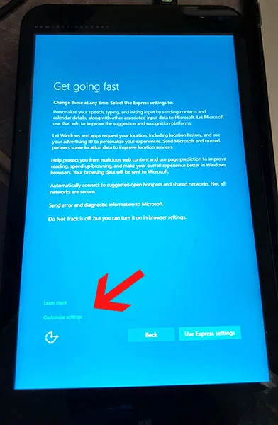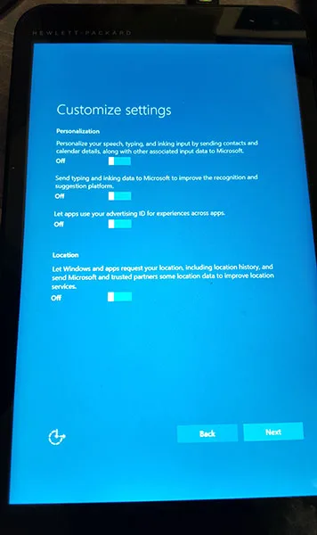 I didn’t get a chance to take photos of the settings part when it asks after upgrading but it’s something I’d like to mention. There are many settings that you should pay attention to regarding privacy. Here’s some photos I took when I was upgrading my HP Stream 7 tablet.